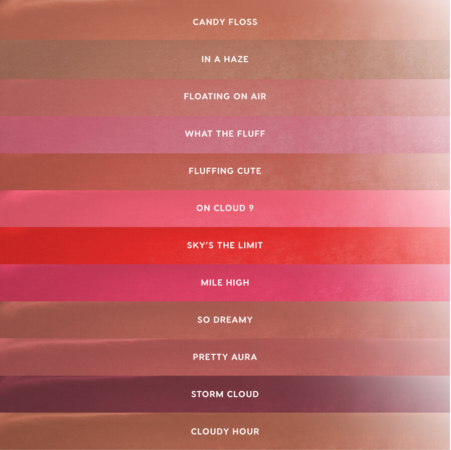 Mantén tu cabeza en las nubes con nuestro lápiz labial líquido que brinda un color suave como una almohada y una comodidad similar a la de una nube para los labios difuminados de tus sueños.